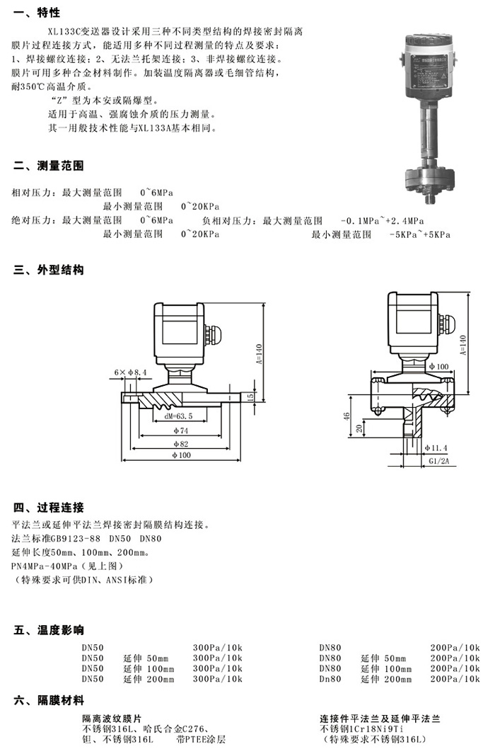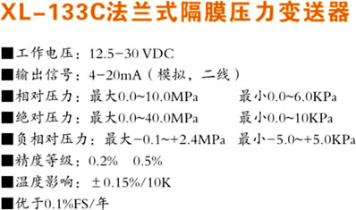XL-133C法蘭式膜片壓力變送器