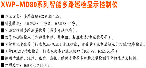 XWP-MD80系列智能多路巡檢顯示控制儀