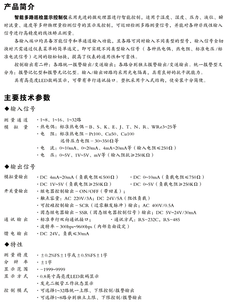 XWP-MS80系列智能多路巡檢顯示控制儀