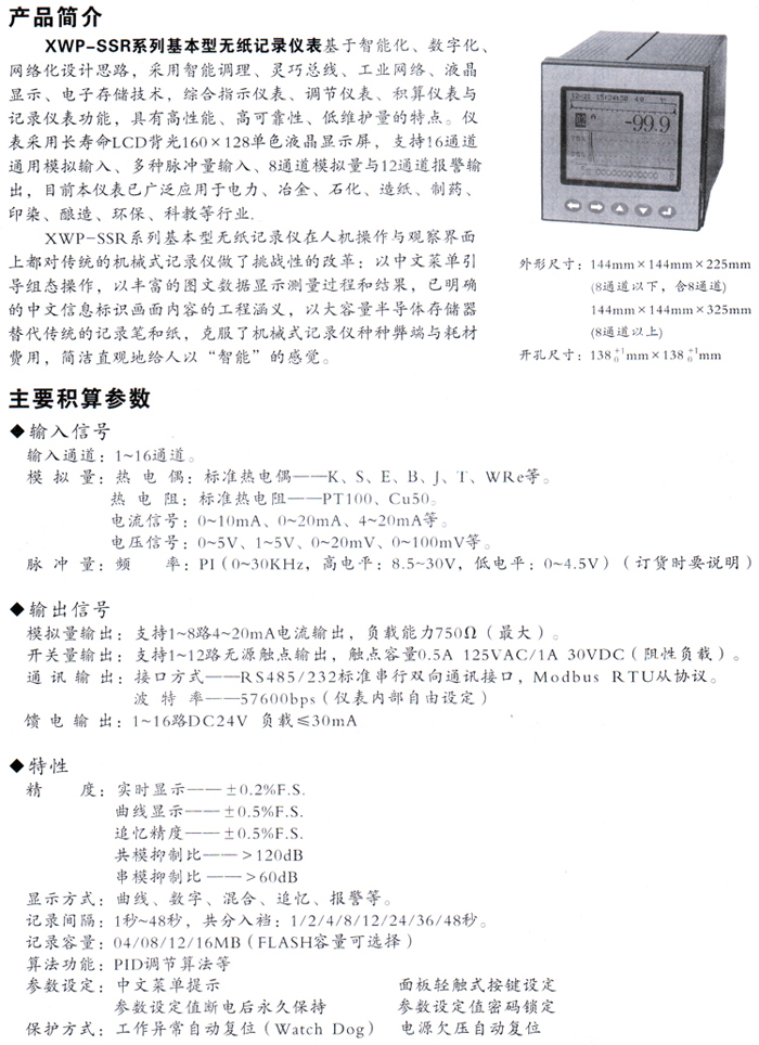 XWP-SSR系列基本型無紙記錄儀